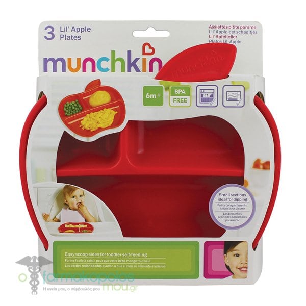 Munchkin`s Lil Apple Plates are stackable plates for your little one which are apple-shaped and have three separate sections with sloping sides for easy scooping to aid your toddler`s self-feeding. Designed in a fun apple shape they come as a pack in three bright colors: yellow, red and lime green.