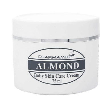 Pharmamed Almond Baby Skin Care Cream is designed for moisturizing and protecting sensitive baby skin. It's formulated to help prevent and treat diaper rash, reduce redness and irritation, and soften the skin. The cream contains almond oil, which is rich in Vitamin E, known for its moisturizing and hydrating properties for dry and itchy skin.