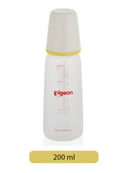 Pigeon Plastic Bottle for +4 months, is designed to encourage the baby's natural tongue movement. milk easily glides down the baby's mouth. It is designed to be held easily and is made up of high-quality durable material.
