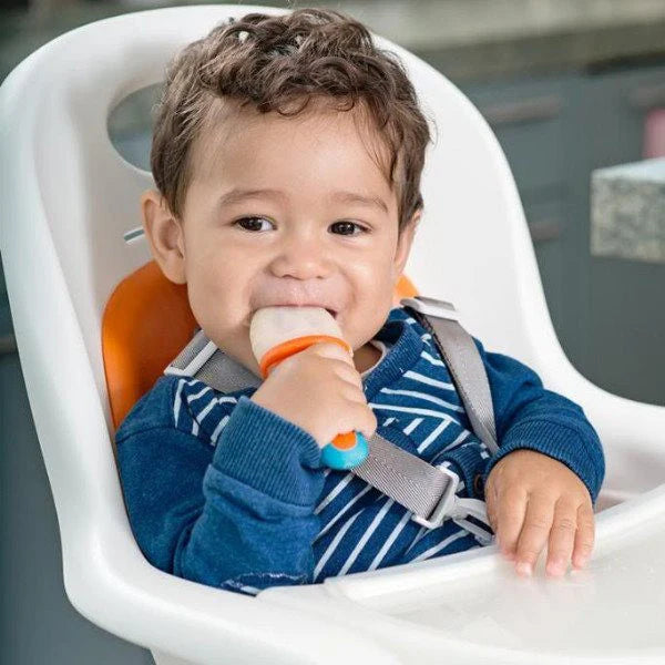 Our silicone teething feeder has some bite to it; allowing for easy feeding with its interior firm stem that forces food out where babies can get to it. It's simple to clean and more durable than mesh feeders.