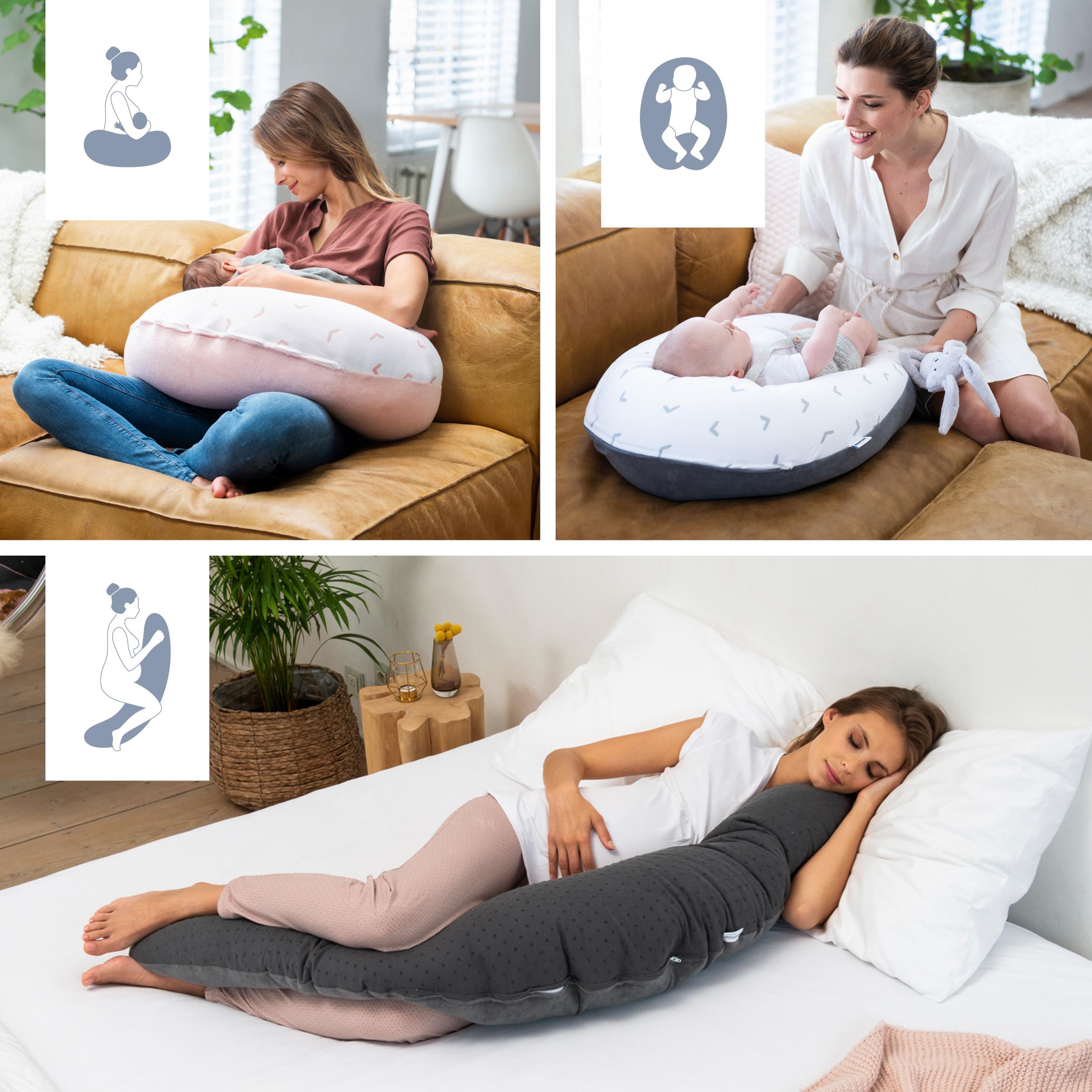 Doomoo Buddy is a multi-functional pillow, with an outstanding softness and flexibility, supporting you during your sleep and your baby during feeding, resting and playing.