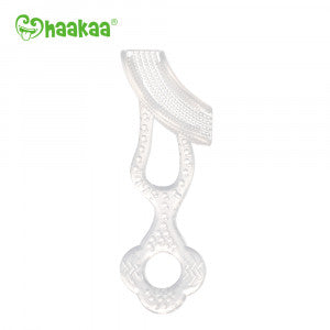 It is made of soft and safe 100% food-grade silicone, with an easy-grip handle for both you or bub to hold. This brush is a real favorite with little ones thanks to its unique curved brush head filled with soft silicone bristles that flex to reach your baby's teeth at all angles.