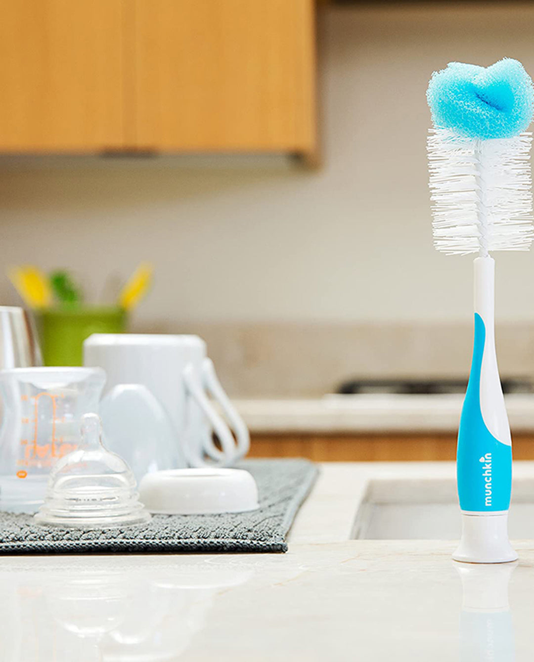 This 2-in-1 brush is a bottle brush and nipple brush in one, so you can clean every inch of your baby bottles with just one handy tool. The sponge tip helps you reach all areas with a sudsy swipe, while the non-slip handle gives soapy hands the right grip while cleaning