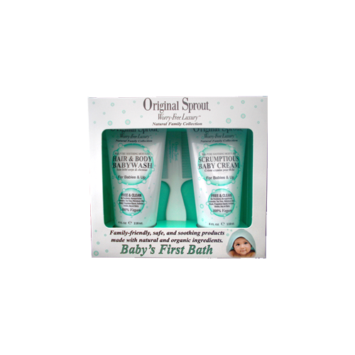 Baby's First Bath Kit from Original Sprout is a perfect shower gift for new baby and mom! This great kit that includes Hair & Body Baby Wash, Scrumptious Baby Cream & Cradle Cap Comb will keep baby soft and smelling wonderful.