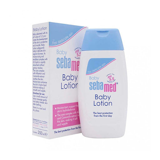 Sebamed Baby Lotion gets rapidly absorbed without greasy residue. Gently protects and safeguards baby's delicate skin against dryness. It contains allantoin that makes the skin smooth and supple while chamomilla recutita extract counteracts inflammation and irritation of the skin.