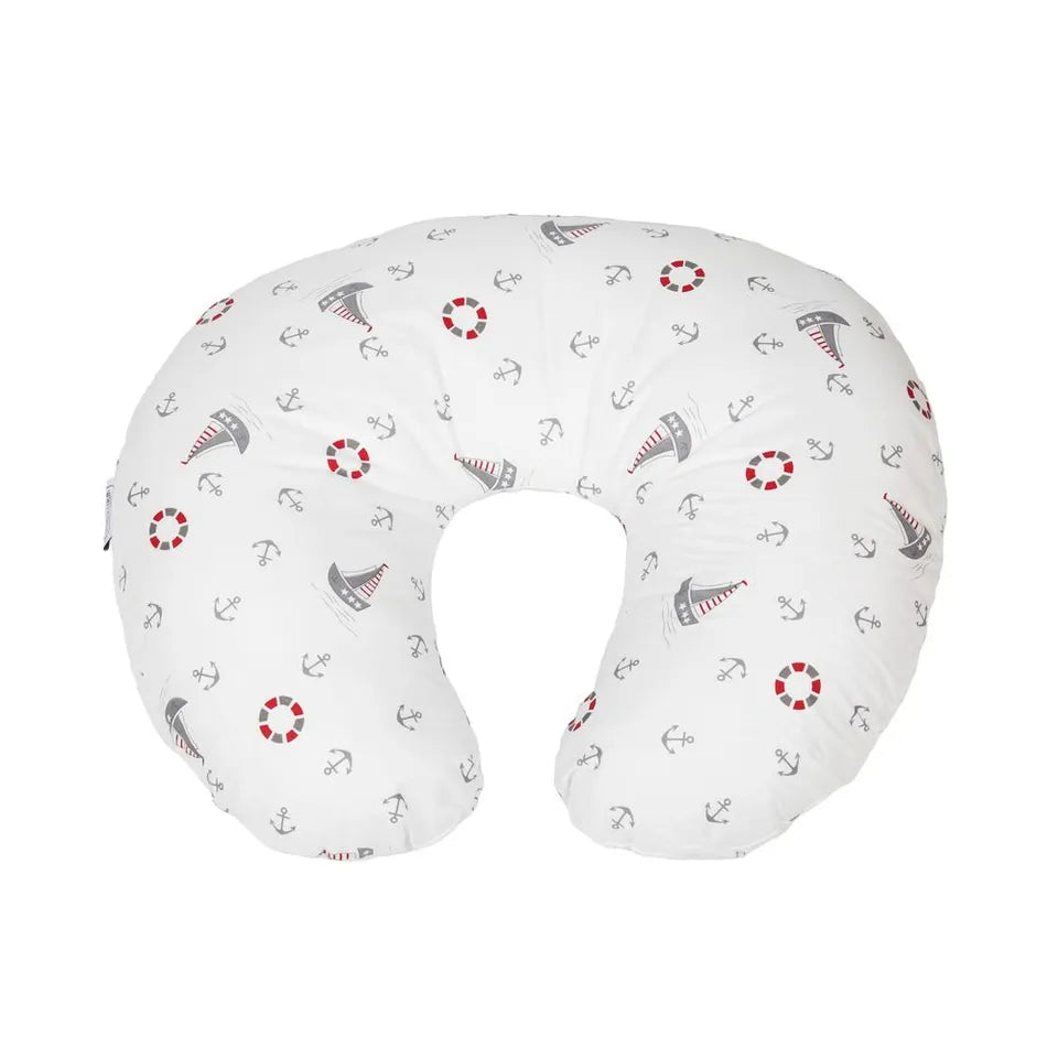 Sail smoothly through feeding time with our White & Grey Nursing Pillow in an adorable Nautical Adventure print! Designed to support both mom and baby, this U-shaped pillow helps reduce arm and back strain while making nursing, bottle-feeding, and tummy time extra cozy.